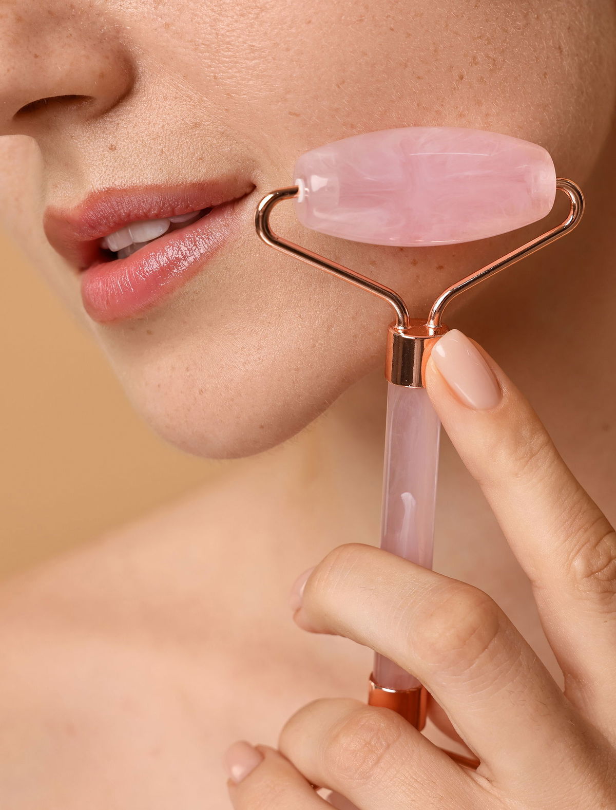 Använd rollern tillsammans med ett serum eller ansiktsolja för att hjälpa produkterna absorberas djupare, samtidigt som du mjukt masserar bort spänningar i ansikte och käke.